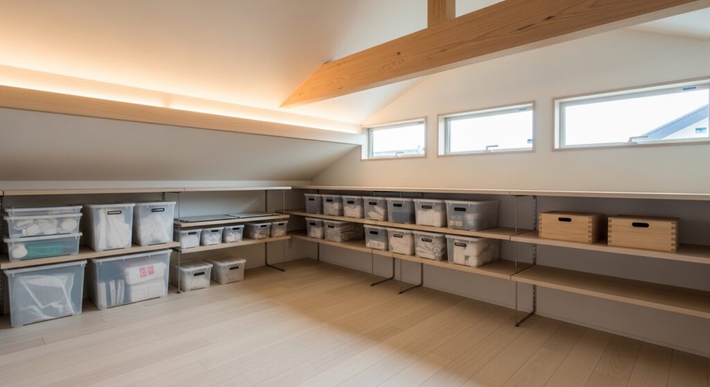 ツーバイフォー工法には屋根を支える骨組みが必要なく、屋根裏の構造がシンプルであるため小屋裏空間を有効活用できる点がメリットです。