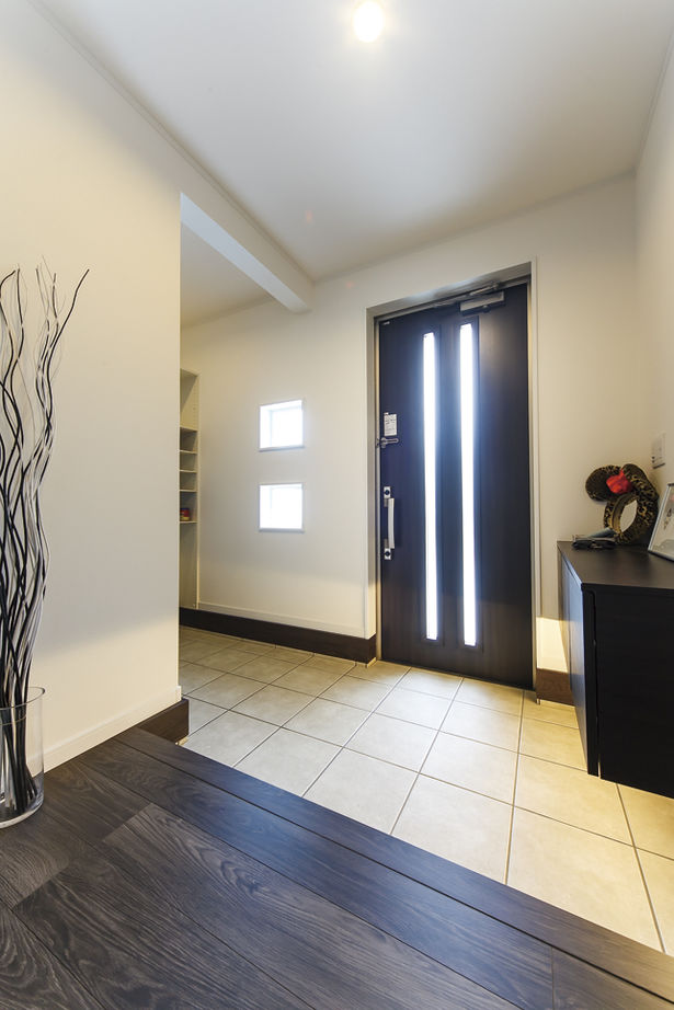 住まいの顔にふさわしい風格の玄関。収納スペースも広々