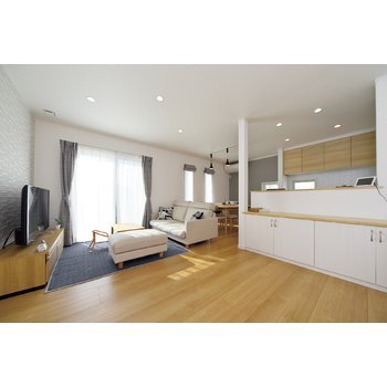 心地よさを追求したリビング。壁はアクセントクロスとエコカラットでメリハリをつけている
