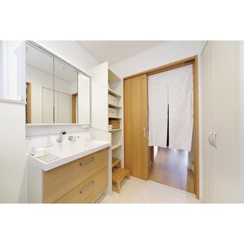 回遊する動線で使いやすい洗面室。帰宅して玄関から直接行けるのが便利