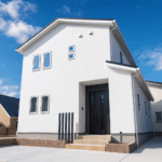 白が映える外観。節電を考慮し、太陽光発電システムの備えている