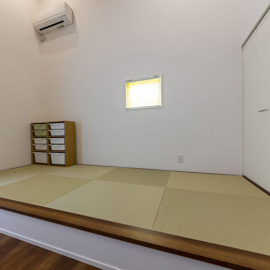 小上がりのタタミコーナーは、段差に腰掛けてテレビを見たり寝転んだり、思い思いに寛げる