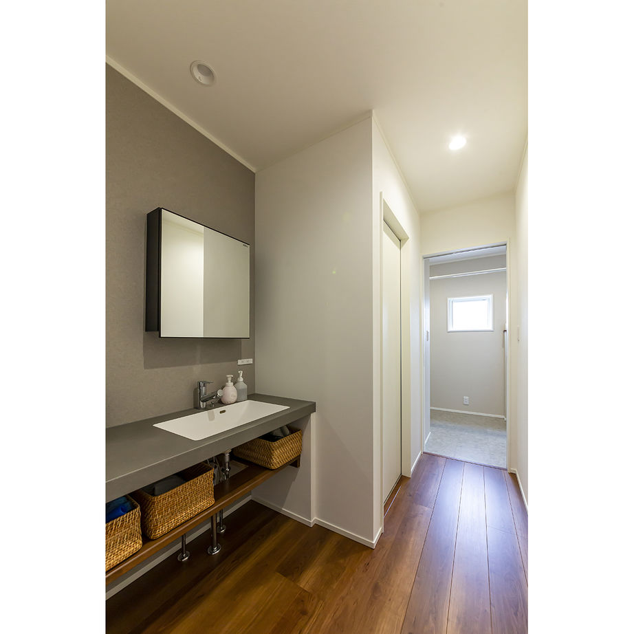 廊下の洗面化粧台は使いやすいだけでなく、見た目の美しさにも気を配ったデザイン