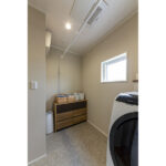 ファミリークロゼットから浴室まで一直線につながる動線。洗濯がしやすく乾いた衣類をしまうのも便利