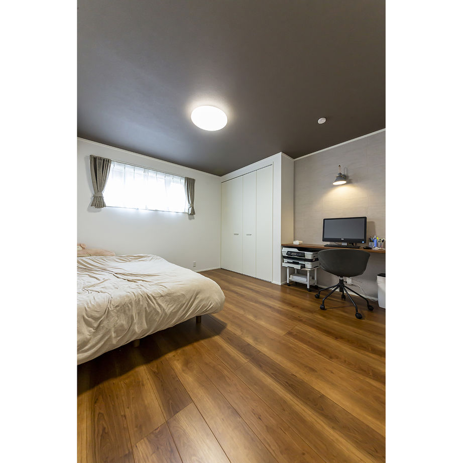 7.5畳の寝室。室内の収納のほか、書斎代わりに使えるカウンターもIさんのこだわり