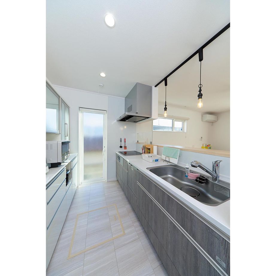 のびのびと家事ができる広さでのキッチンは、清潔感のある上品な色合いでまとめた