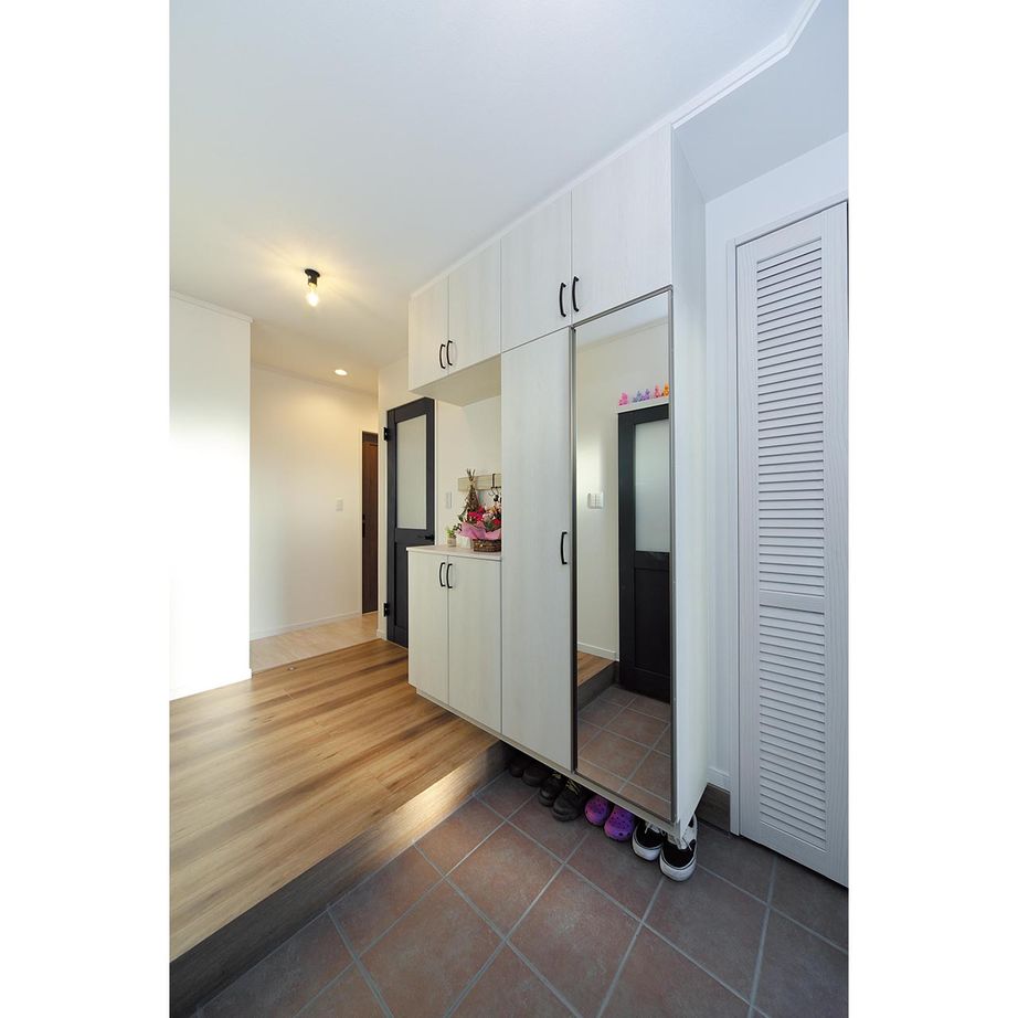 ゆとりのある玄関とホール。玄関収納も大きいので、家族7人分の靴もすっきりとしまえる