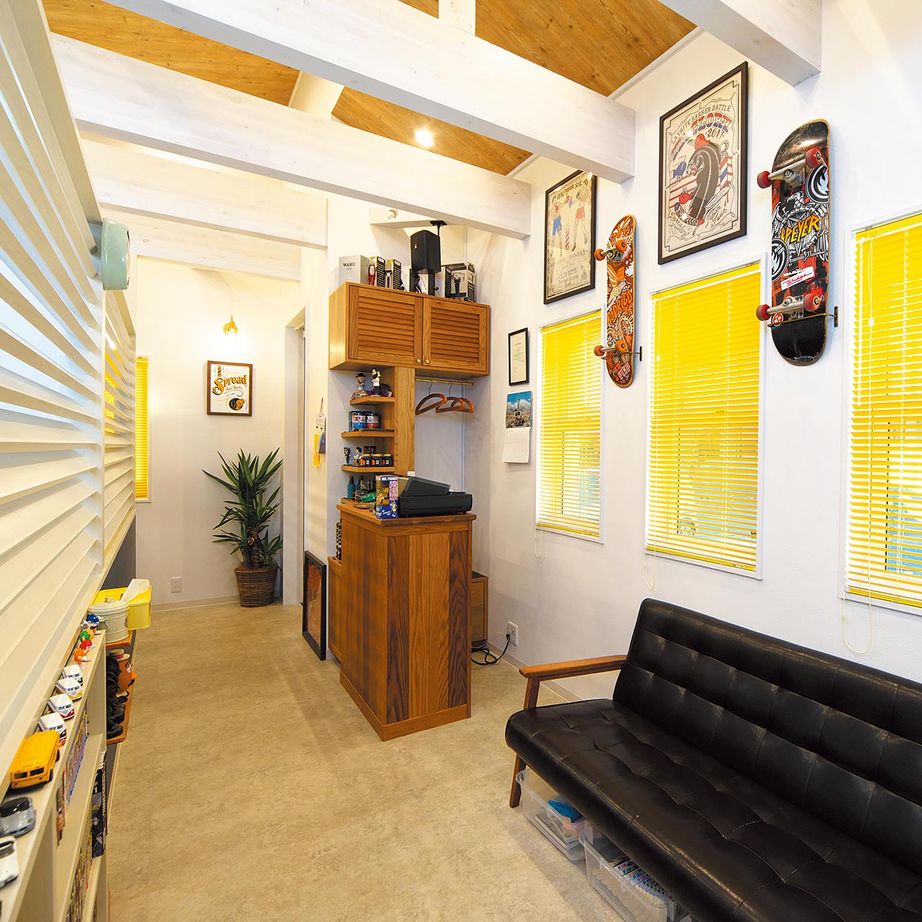 室内干しができるよう、2階のホールは広めに確保。日当たりもよく快適